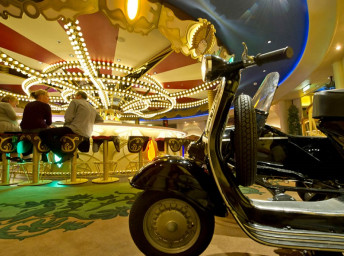 Zariadenie kajút: dvojlôžková queen posteľ (matrace Posturepedic Sealy, bielizeň z egyptskej bavlny), skriňa, kúpeľňa so sprchou, vaňou a WC, sušič na vlasy, kozmetika H20+ spa (šampón, kondicionér a telové maslo), obývacia časť so sofa a stolíkom, oddeliteľná závesom, 22 palcová plochá Tv, bezpečnostná schránka, telefón s priamou linkou, zrkadlo, regulovateľná klimatizácia.