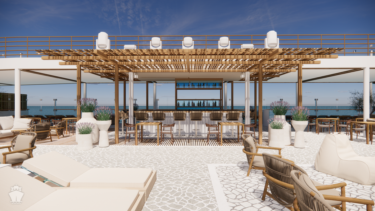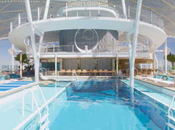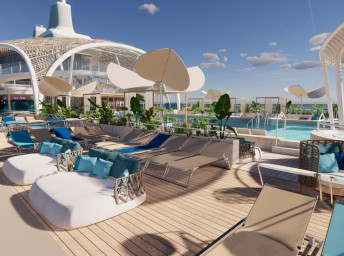 Loď Mein Schiff Relax má 15 palúb prístupných pre cestujúcich, otvorené verejné priestory o celkovej rozlohe 20 500 m2