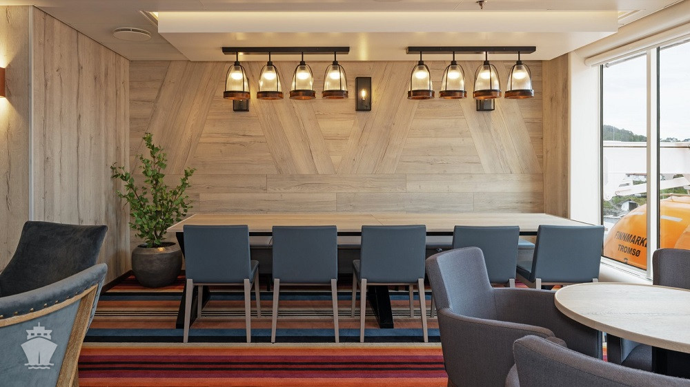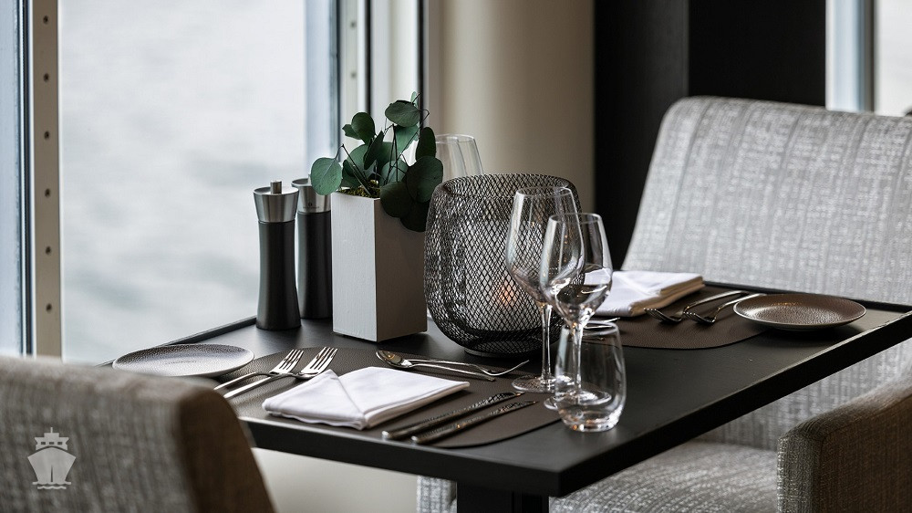 Hlavná reštaurácia Aune v tradičnom štýle, kde sa podávajú hlavné jedlá; celodenne otvorená Fredheim na bežné medzinárodné stolovanie; a Lindstrøm, exkluzívna top reštaurácia zahrnutá v cene plavby pre hostí Suite a pre ostatných na rezerváciu a za príplatok. Každá z nich ponúka kuchyňu s jedinečným charakterom, s využitím bio a lokálnych surovín.