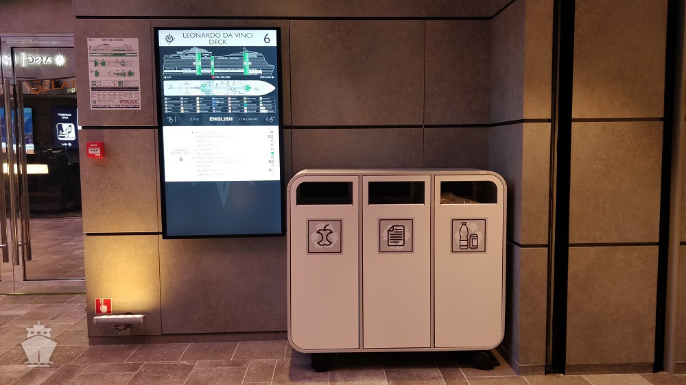 - Dvojúrovňová promenáda s reštauráciami, barmi a duty-free obchodmi, zastrešená 480 m² LED “digitálnou oblohou” s vizuálnymi show