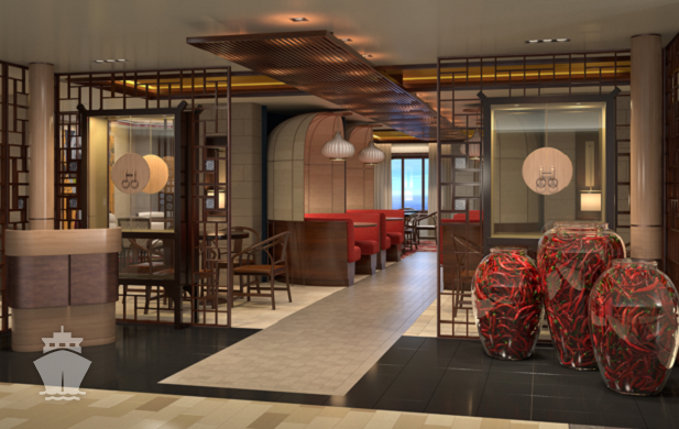 • Bufetová reštaurácia Windjammer Marketplace - Early Breakfast, raňajky, obed a večera. Asi o 1/5 väčšia v porovnaní s loďami Quantum-Class. Medziiným k dispozícii noodles, krájaná pizza, Teppanyaki a čínske hot pot jedlá.