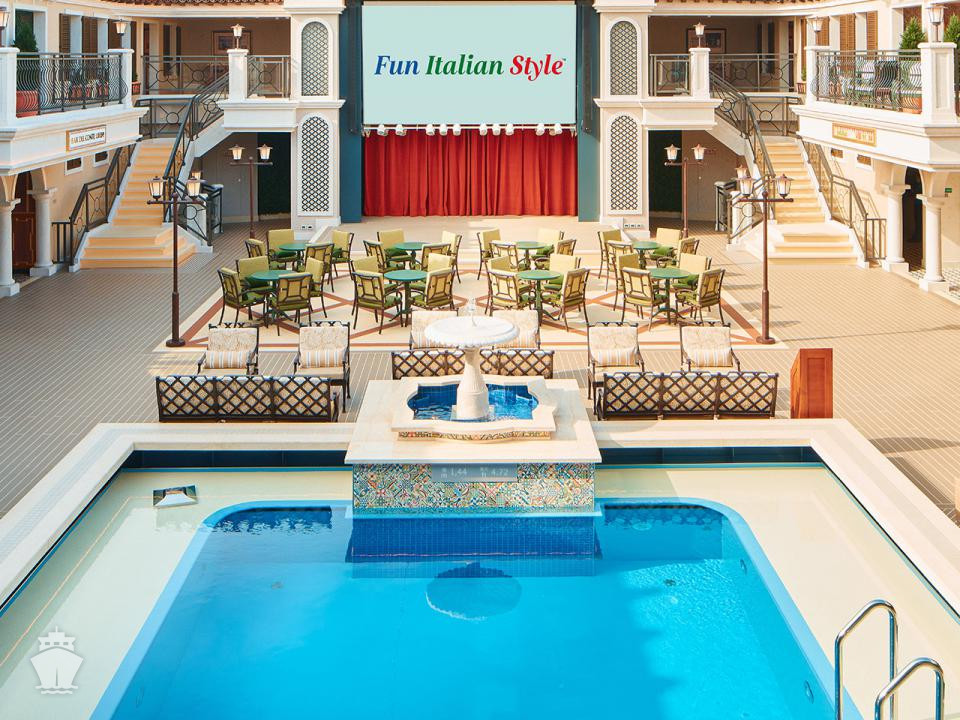 Átrium inšpirované Benátkami - Piazza San Marco, trojchodové reštaurácie Marco Polo a Canal Grande, La Strada Grill™ , či mexicko-talianske špeciality Tomodoro™ a Guy's Burger Joint (nové hamburgery s talianskou príchuťou).