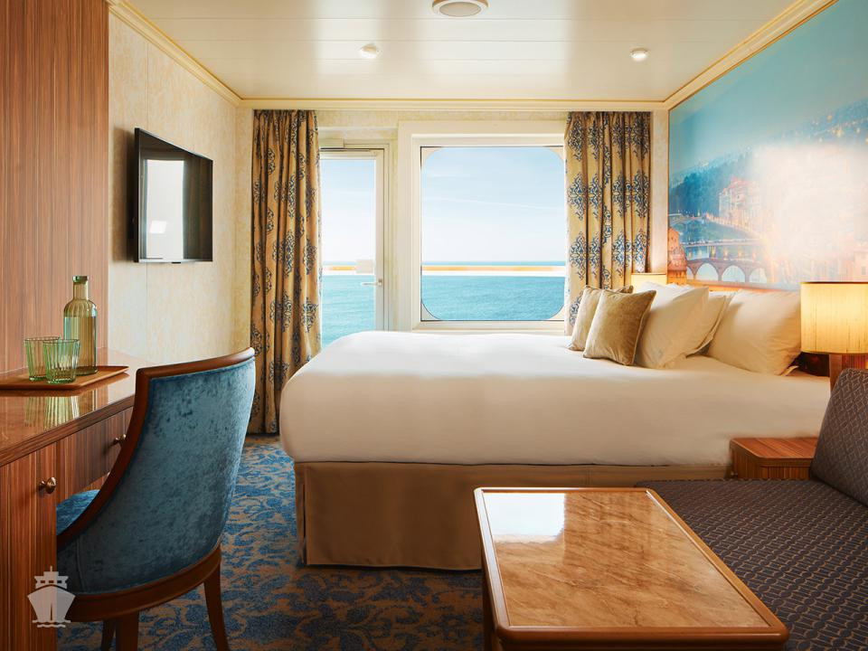Kajuta plná talianskeho vkusu, priestranný balkón je samozrejmosť. Exkluzívny prístup na Terrazza Carnivale.