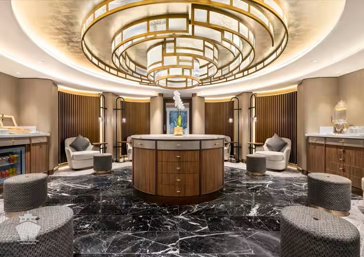 Na elegantnej Oceania Allura hostí uvíta vstupná hala s veľkým, širokým schodiskom a charakteristickým krištáľovým stĺpom. K ďalším priestorom patrí Grand Lounge zariadený v zlatej farebnej palete, kasíno a knižnica s interiérom od Ralpha Laurena. Zvýrazneným viacúčelovým miestom je Horizons, ktorý sa nachádza v prednej časti lode na 14. palube. S panoramatickými oknami od podlahy až po strop slúži ako hlavný salón a využíva sa aj na popoludňajší čaj a večernú zábavu.