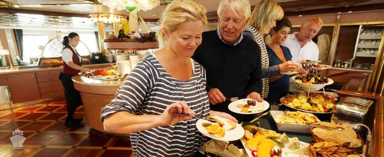Stravovanie: Na trajektových lodiach spoločnosti sa stolovanie sa odohráva v jednej reštaurácii. Raňajky a obedy sú otvorené a podávané formou bufetu  s dobrým výberom chutných nórskych a medzinárodných jedál. Večere sú v stanovených časoch s vyhradenými miestami, obsahujú tri chody. Špeciálne požiadavky ohľadom stravovania je potrebné nahlásiť vopred. Kaviareň otvorená 24 hodín denne (tu sa platí za každú konzumáciu podľa jedálnička) je najčastejšie využívaná cestujúcimi, ktorí cestujú len na krátkych úsekoch.