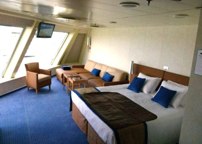| 4D - Vnútorná kajuta 17 m². 6. púaluba vpredu, vzadu. | 420 € 210 € za osobu | ||
