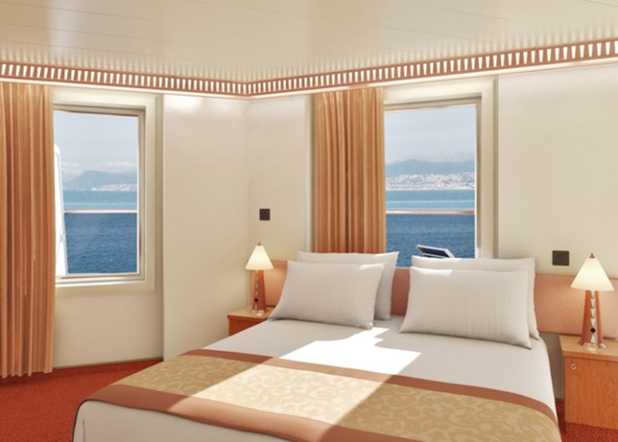 | 6A - Kajuta s oknom 20 m². Neotvárateľné okno.1. paluba vpredu, vzadu. | 508 € 254 € za osobu | ||