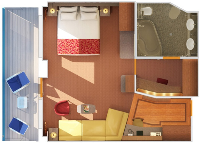 | 9C - Kajuta s balkónom Premium Vista 17 m² + rohový balkón 7 m². 6,7,8. paluba vzadu. | 1 396 € 698 € za osobu |