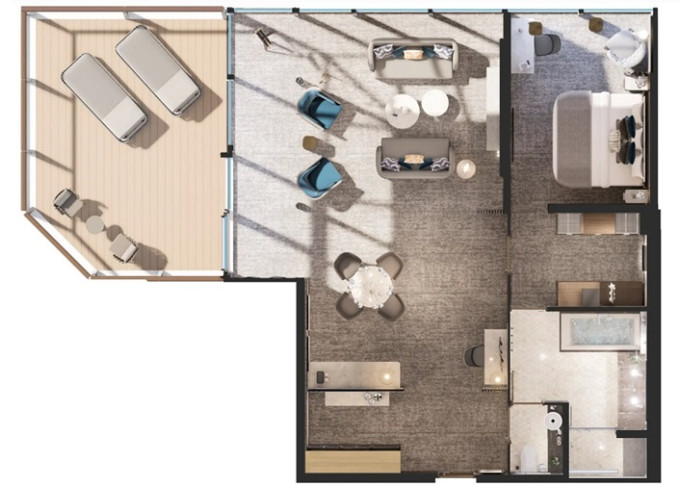| G1 - Grand 1 Suite 91 m² + veranda 64 m². 7. paluba vpredu. Max 3 osoby. | 91 400 € 91 400 € za osobu |
