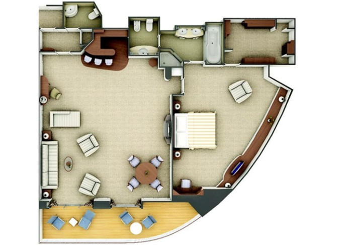 SV - Superior Veranda Suite 32 m² (vrátane balkóna 6 m²). 5.až 8. paluba. Max 3 osoby. 12 800 € 12 800 € za osobu