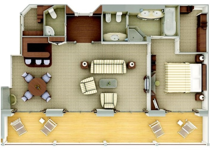 SL - Silver Suite 61-65 m² (vrátane verandy). 7. paluba. Max 3 osoby. 16 000 € 8 000 € za osobu