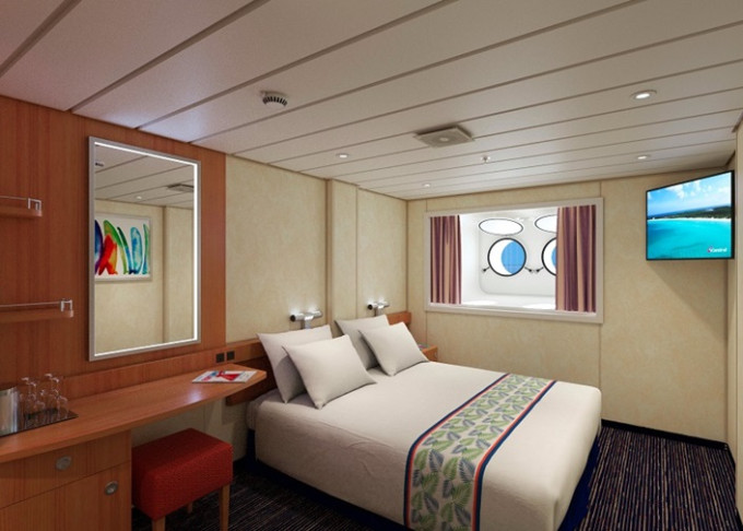 Základné vybavenie všetkých kajút: kúpeľňa so sprchou a WC, TV s plochou obrazovkou, telefón, elektrická zásuvka 110 AC, regulovateľná klimatizácia, postele Carnival Comfort, sušič na vlasy, bezpečnostná schránka, mini chladnička.