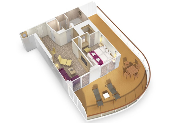 | SC - Suite PREMIUM 40 m²+ terasa 33 m². 8. až 15. paluba. Max 5 osôb. Cenový model Premium + výhody Suite. | 4 290 € 2 145 € za osobu | ||