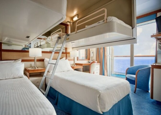 OV - Vonkajšia kajuta / obmedzený výhľad 16,5 m². Neotvárateľné okno s obmedzeným výhľadom. Max 2-4 osoby (2 horné lôžka). 1 804 € 902 € za osobu