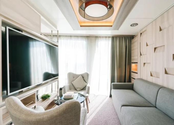 Úžasná scenéria sa odráža v bohatom a pohodlnom dizajne interiéru. Škandinávske prírodné materiály, ako žula, dub, breza a vlna, boli použité na vytvorenie štýlových kajút a verejných priestorov. Všetky kajuty sú vonkajšie, pričom 50 % má vlastný balkón, a apartmány na korme majú súkromné vonkajšie vírivky s nádherným výhľadom.