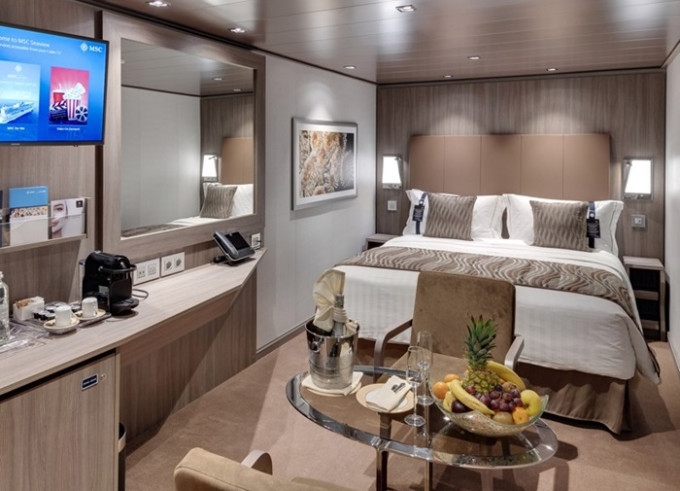 Vonkajšia kajuta s neotvárateľným oknom: 17 m², kajuta s manželskou posteľou (na požiadanie 2 oddelené postele) a 1-2 vyklápacie horné lôžka resp. rozťahovacia pohovka. Klimatizácia, kúpeľňa so sprchou a WC, toaletný stolík, skriňa, interaktívna TV, trezor, telefón, sušič vlasov, virtuálna asistentka ZOE, neotvárateľné okno. Kajuty v kategórii Bella a niektoré Junior a Deluxe majú obmedzený výhľad.