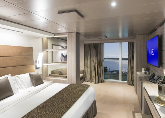 | YC1 - Yacht Club Deluxe Suite od 25 m² + balkón 8 m². Spálňa s predelenou obývacou časťou, šatník. Max 5 osôb. 16-19. paluba. Cenový model MSC Yacht Club. | 4 611 € 4 611 € za osobu | ||