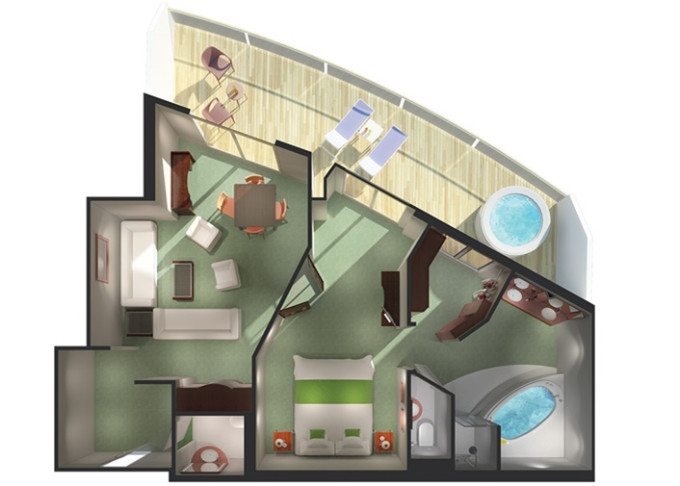 | SA - Owners Suite 76 m² / balkón 23 m². Vírivka. 11. paluba - vpredu. Max 4 osoby. Výhody Suite. | 18 978 € 9 489 € za osobu | ||