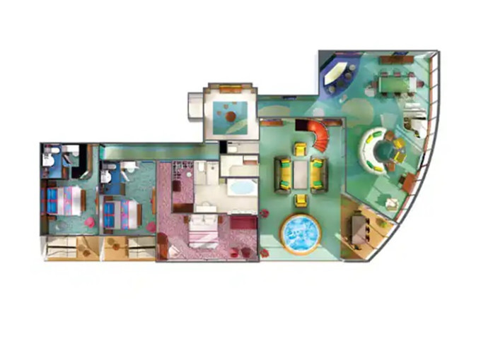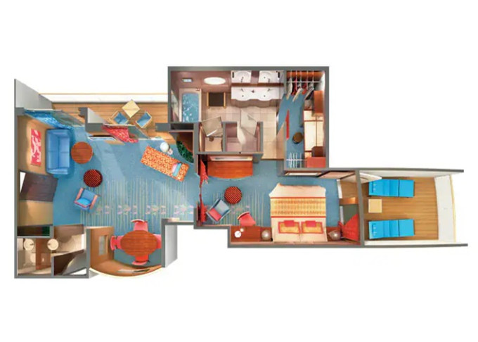 | S4 - Deluxe Family Suite - 2 spálne 50 m² / balkón 5 m². Výhody Suite. 11. paluba - vpredu, stred. Max 6 osôb. | 7 988 € 3 994 € za osobu | ||