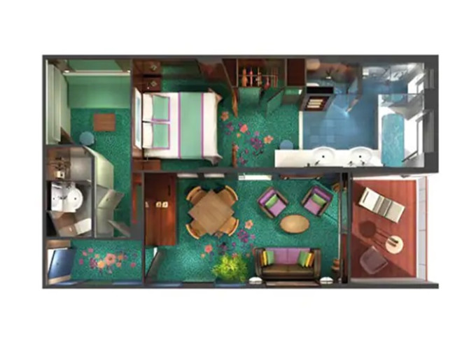| H4 - The Haven Deluxe Owner's Suite s veľkým balkónom 73 m² / balkón 23 m². 9. paluba vpredu. Max 4 osoby. Výhody The Haven. | 15 702 € 7 851 € za osobu |