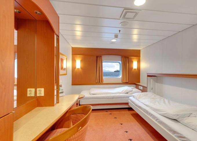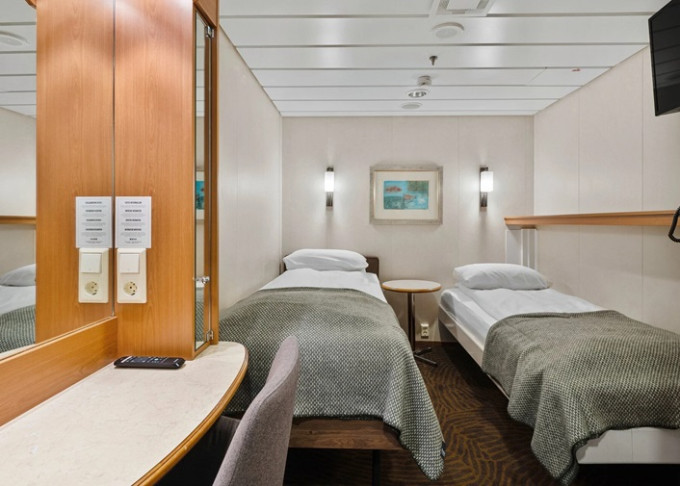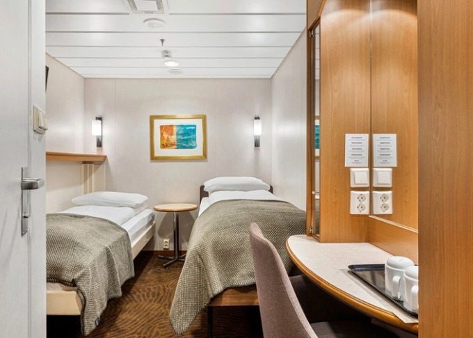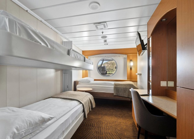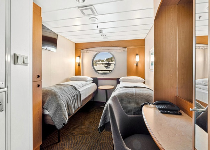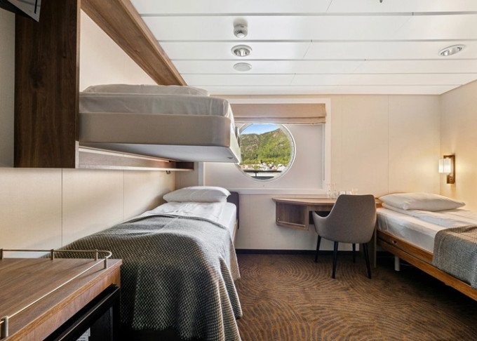 L2 - Vonkajšia kajuta Polar s obló 10-11 m². Neotvárateľné obló / môže byť obmedzený výhľad. Oddelené postele. 4. paluba. Max 2 osoby. 4 068 € 2 034 € za osobu
