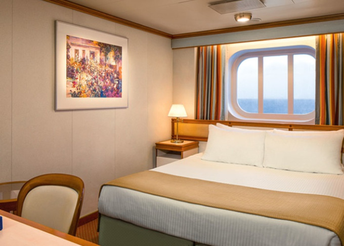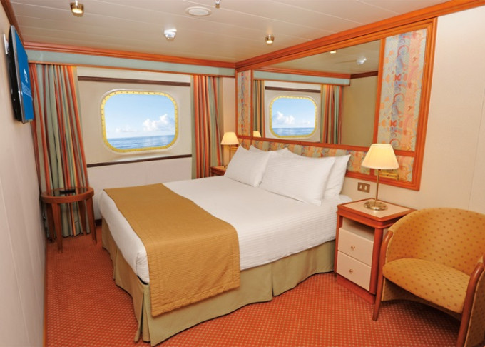 | OV - Vonkajšia kajuta / obmedzený výhľad 17 m². Neotvárateľné okno s obmedzeným výhľadom. Max 2-4 osoby (1-2 horné lôžka). | 1 738 € 869 € za osobu | ||