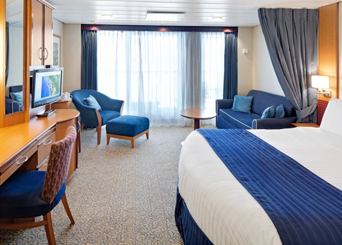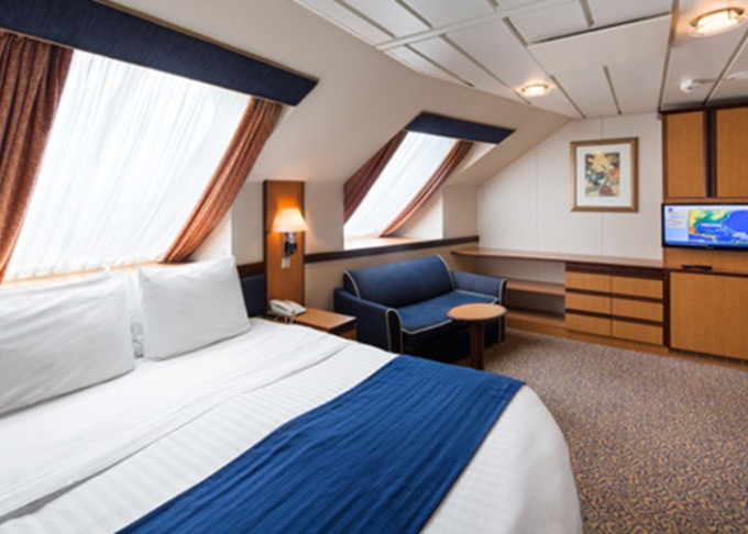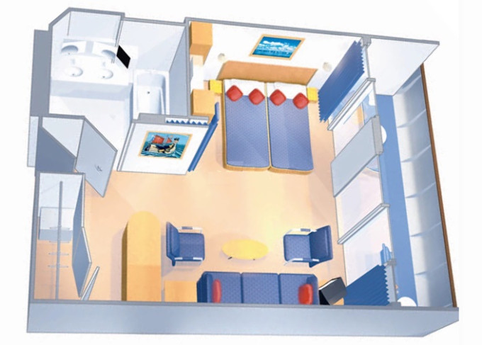 | 1K - Veľká vonkajšia kajuta Ultra Spacious 24,5 m². Neotvárateľné okno. 7/8. paluba. Oddelená časť s poschodovou posteľou. Max 5-6 osôb. | 3 524 € 1 762 € za osobu |