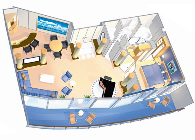 | RS - Royal Suite s balkónom 93 m² / balkón 16 m². 10. paluba. Max 4 osoby. Výhody Suite. | 4 271 € 4 271 € za osobu |