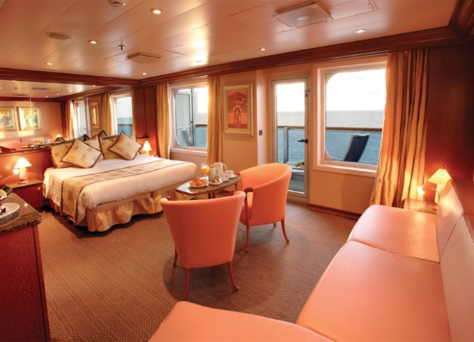 - Ubytovanie v kajute vybranej kategórie. Základné vybavenie: kúpeľňa s WC a sprchovacím kútom, 2 lôžka spojiteľné do manželskej postele, skrine, nočné stolíky, toaletný stolík a stolička, nastaviteľná klimatizácia, interaktívna satelitná TV s plochou obrazovkou, trezor, sušič na vlasy, uteráky a posteľné prádlo, Wi-Fi pripojenie (za poplatok), 24/7 kajutová služba (za poplatok).