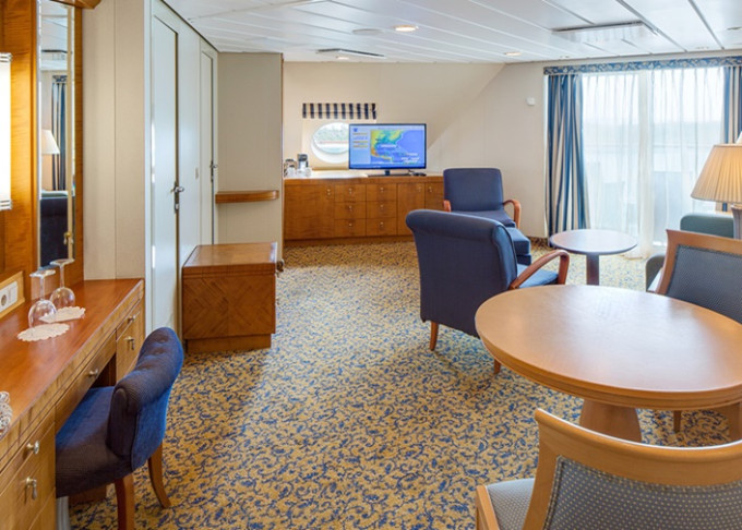 Všetky kajuty sú štandardne vybavené: 2 postele spojiteľné do manželského lôžka; nočné stolíky, kúpeľna so sprchovým kútom; šampón a sprchovací gel, stolík a kreslo; interaktívna TV, sušič na vlasy, minibar; bezpečnostná schránka, skriňa.