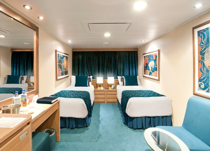 Vnútorná: 13m², kajuta s manželskou posteľou (na požiadanie 2 oddelené postele) a 1-2 vyklápacie horné lôžka. Klimatizácia, kúpeľňa so sprchou, toaletný stolík, skriňa, TV, minibar, sejf, telefón, sušič na vlasy. Internetové pripojenie (za poplatok).