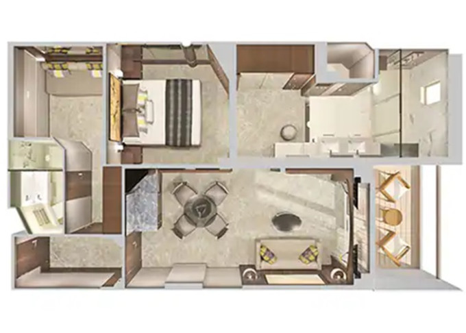 | S4 - Deluxe Family Suite 50 m² / balkón 5 m². 11. paluba - vpredu, stred. Max 6 osôb. Výhody Suite. | 10 328 € 5 164 € za osobu | ||