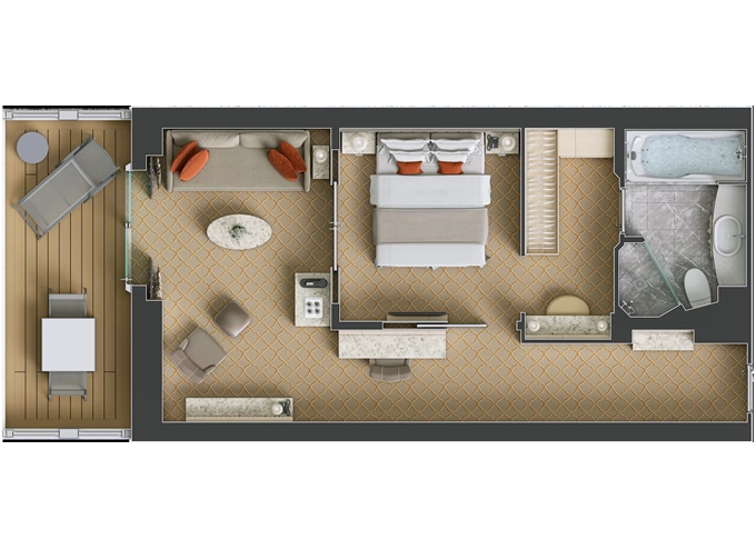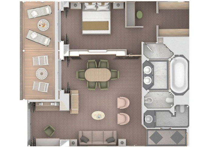 | SV - Superior Veranda Suite 30 m² + balkón 6 m². 7,8,9. paluba. Max 3 osoby. | 12 150 € 12 150 € za osobu |