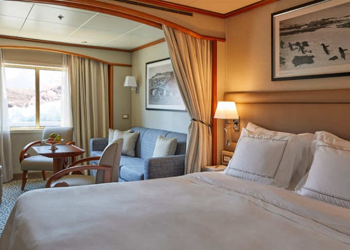 | PA - Panorama Suite 31 m². Panoramatické neotvárateľné okno. 9. paluba. Max 2 osoby. | 13 800 € 13 800 € za osobu | ||