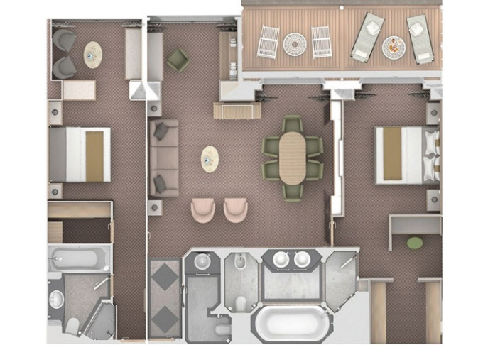 | S2 - Silver Suite 2 92 m² + 12 m². Silver Suite SL spojená s Panorama Suite PA. 9,10,11. paluba. Max 5 osôb. | 44 800 € 44 800 € za osobu |