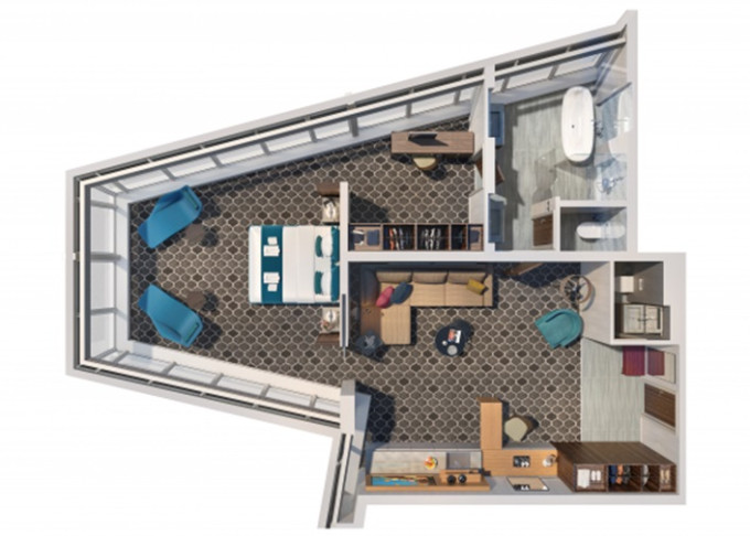 L1 - Crown Loft Suite s balkónom 50 m² + balkón 10 m². 2-podlažný apartmán. 17. paluba. Max 4 osoby. Výhody Royal Suite Sky Class. 13 456 € 6 728 € za osobu