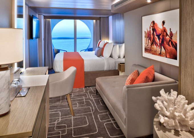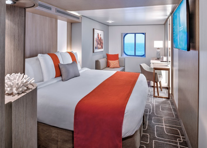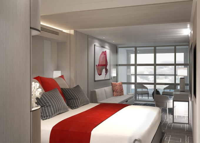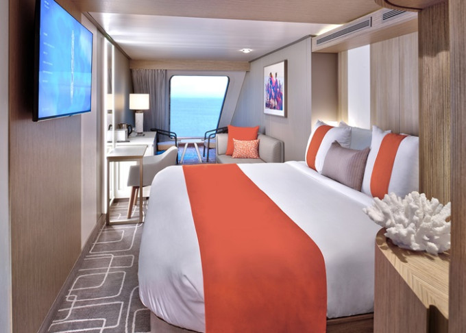 - Kajuty sú umiestnené v blízkosti lodného Spa. K ich vybaveniu patrí posilnený systém vzdušnej filtrácie, posteľ Queen-Size (v kategóriách Edge King-Size), veľké zasúvacie sklenené dvere, exkluzívne posteľné prádlo eXhale®, veľkorysé skladovacie priestory.