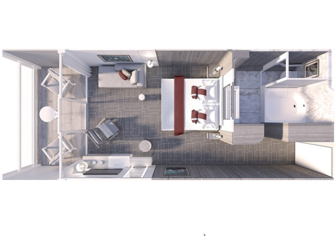 | E3 - Kajuta Edge s balkónom Infinite / obmedzený výhľad 18,5 m² + balkón Infinite 4 m² s obmedzeným výhľadom. 6. až 8. paluba. Max 2-4 osoby. | 2 724 € 2 724 € za osobu | ||