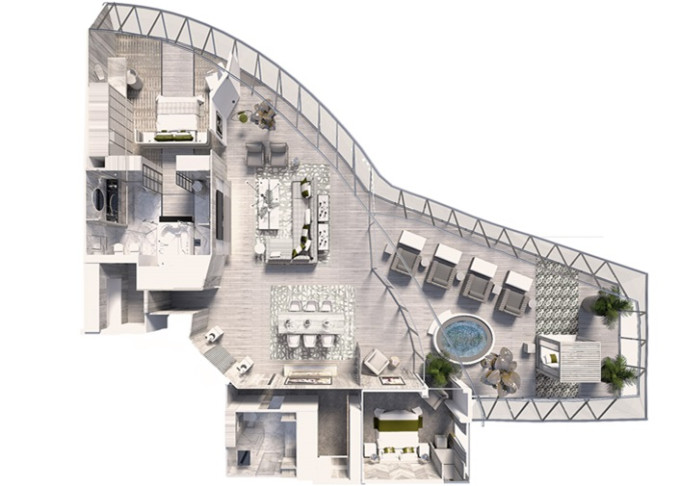 | IC - Iconic Suite s balkónom 176 m² + terasa s vírivkou 64 m². 2 spálne, 2 kúpeľne (1 s vírivkou).12. paluba vpredu. Max 6 osôb. Výhody Suite. | 42 006 € 21 003 € za osobu | ||