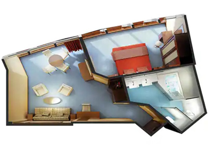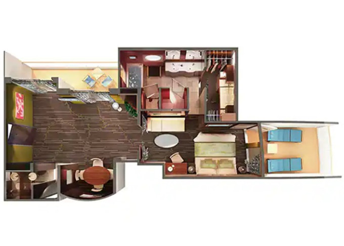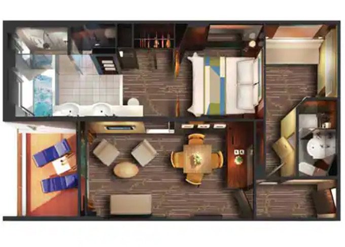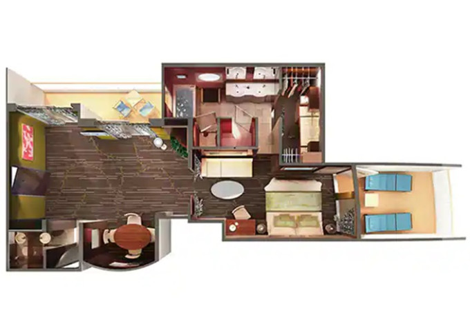 | S2 - Deluxe Owner Suite 83 m² / balkón 13 m². Vírivka. 10. paluba - vpredu. Max 4 osoby. Výhody Suite. | 11 614 € 5 807 € za osobu |