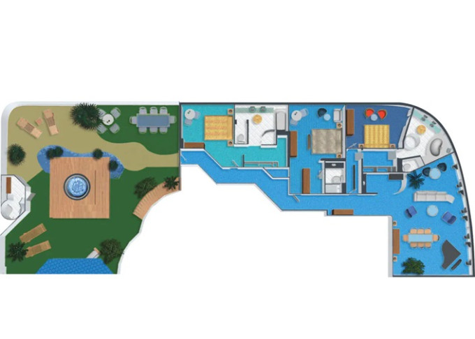 | S1 - Garden Villa - 3 spálne 621 m² / balkón 414 m². Vírivka. 14. paluba - stred. Max 7 osôb. Výhody Suite. | 27 930 € 13 965 € za osobu |