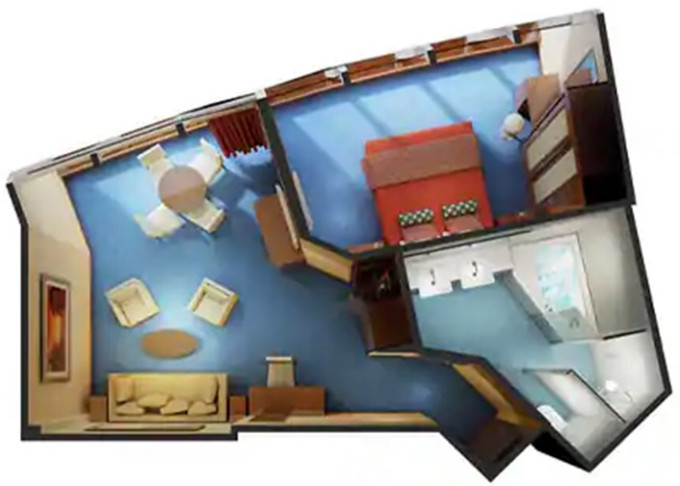 | S4 - Deluxe Family Suite - 2 spálne 54 m² / balkón 5 m². 11. paluba - vpredu, stred. Max 6 osôb. Výhody Suite. | 6 008 € 3 004 € za osobu | ||