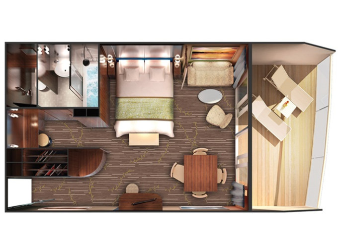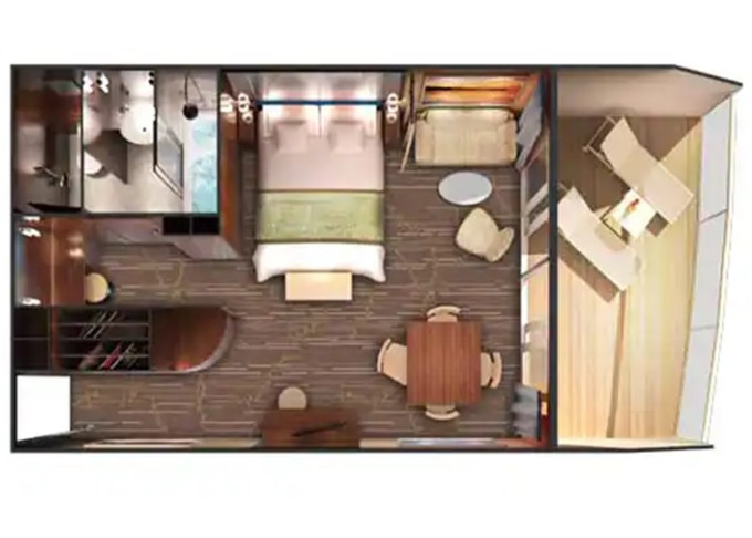 | SM - Aft-facing Penthouse 35-38 m² / balkón 8-11 m². 10. paluba - vzadu. Max 3 osoby. Výhody Suite. | 4 938 € 2 469 € za osobu | ||