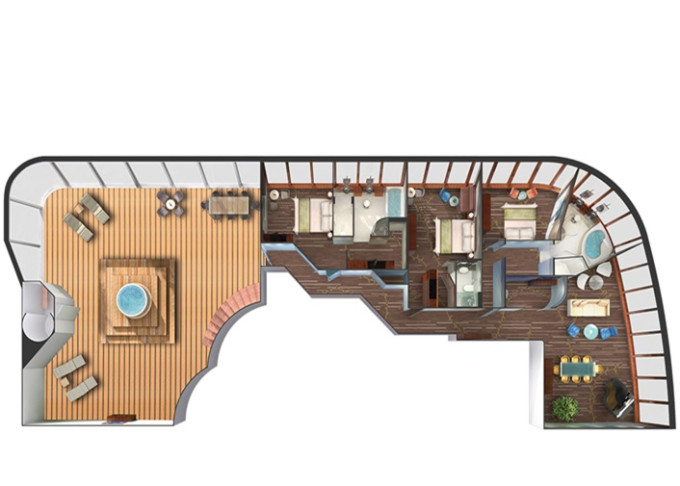 | S1 - Garden Villa - 3 spálne 621 m² / balkón s vírivkou 413 m². 14. paluba - stred. Max 7 osôb. Výhody Suite. | 25 682 € 12 841 € za osobu |