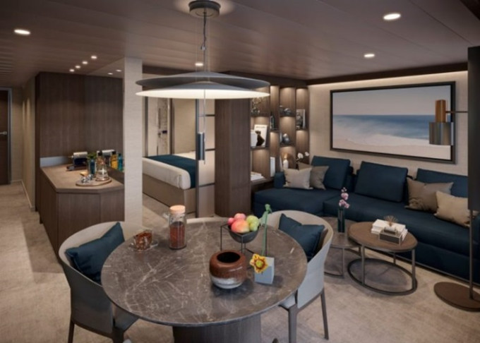 | Ocean Residence - Retreat Residence Suita 63 m² + Terasa s vírivkou a sedením 14 m² / 7. paluba: 18 m². Spálňa s obývacou a jedálenskou časťou, šatník. Koktailová súprava, minibar, kávovar, vodná kanvica, ďalekohľad, sejf, mramorová kúpeľňa s vaňou a sprchou, extra wc. Taška Technogym Case Kit. Fľaša šampanského na privítanie. Služby osobného majordóma. Maximálna kapacita 3 dospelí alebo 2 dospelí + 2 deti pod 18 rokov. | 24 855 € 8 285 € za osobu |