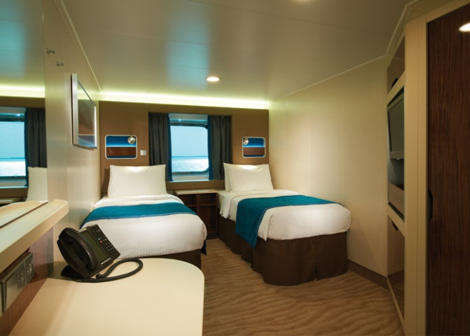 O4 - Vonkajšia kajuta Family od 14 m². Neotvárateľné okno. 5. paluba - vpredu, vzadu. Max 5 osôb. 2 304 € 1 152 € za osobu
