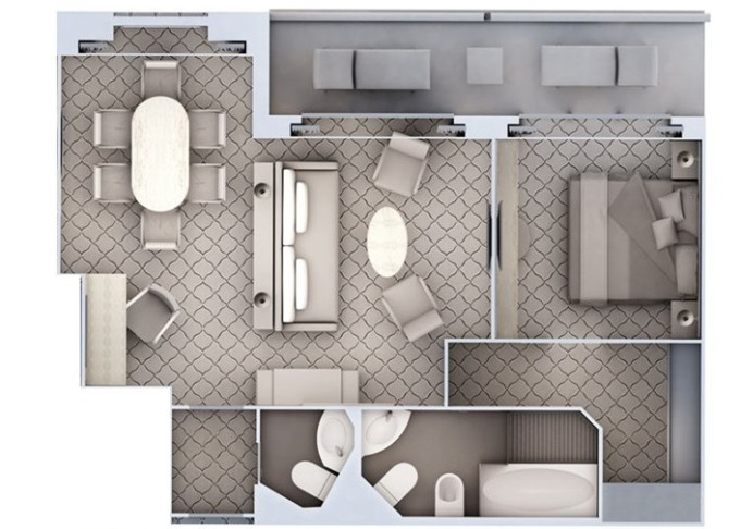| G1 - Grand Suite 1 95 m² (vrátane balkóna 14 m²). 7. paluba. Max 3 osoby. | 104 000 € 26 000 € za osobu | ||
