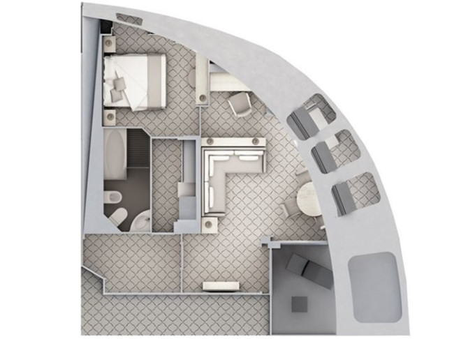 | O1 - Owner's Suite 1 55 m² (vrátane balkóna 8 m²). 7. paluba. Max 3 osoby. | 80 700 € 26 900 € za osobu | ||