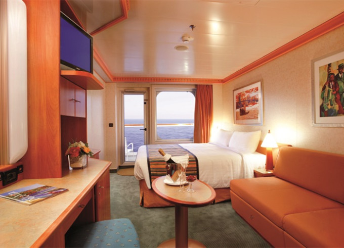 - Ubytovanie v kajute vybranej kategórie. Základné vybavenie: kúpeľňa s WC a sprchovacím kútom, 2 lôžka spojiteľné do manželskej postele, skrine, nočné stolíky, toaletný stolík a stolička, nastaviteľná klimatizácia, interaktívna satelitná TV s plochou obrazovkou, trezor, sušič na vlasy, uteráky a posteľné prádlo, Wi-Fi pripojenie (za poplatok), 24/7 kajutová služba (za poplatok).