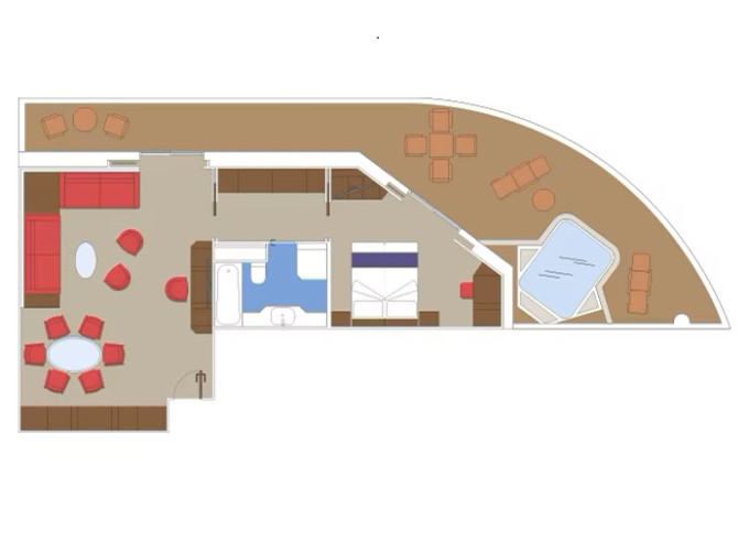 | YC3 - Yacht Club Royal Suite s terasou a s vírivou vaňou 51-59 m² / balkón s vírivkou 42-51 m². Oddelená obývačka a spálňa, šatník, kúpeľňa s vaňou. Max 4 osoby. 16/18. paluba. Cenový model MSC Yacht Club. | 9 950 € 9 950 € za osobu | ||